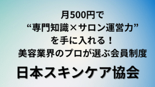 スキルアップ 美容プロ必見!年6,000円で知識もサロン運営力も強化──日本スキンケア協会 一般会員のすべて 年6,000円で専門医や大学教授から学べる!日本スキンケア協会の一般会員制度は、美容知識・サロン運営・人脈形成をサポート。口コミ・評判・特典を徹底解説。 2025.11.06 スキルアップ美容関係